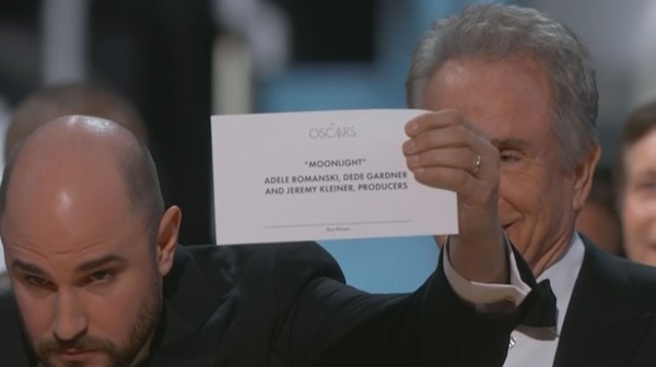 A confusão ocorreu porque o envelope errado foi entregue aos apresentadores — o de Melhor Atriz, vencido por Emma Stone por La La Land. Minutos depois, a equipe corrigiu o erro: o verdadeiro vencedor era Moonlight, de Barry Jenkins, em um dos momentos mais constrangedores e caóticos da cerimônia.